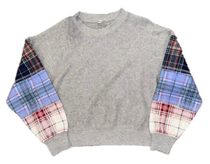 Triple Plaid Sleeve Crewneck